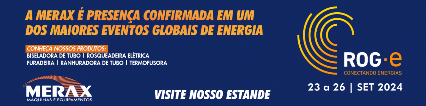 Buscando se modernizar continuamente, a Merax se aproxima dos seus 20 anos de sucesso, apresentando uma ampla linha de produtos, que inclui termofusoras /solda a topo, biseladoras de tubos, rosqueadeiras elétricas, furadeiras de base magnética, perfuratrizes de concreto e ferramentas hidráulicas. Estes equipamentos são projetados para atender às rigorosas demandas das indústrias de óleo e gás, energia solar, construção civil, montagem e manutenção industrial, metal-mecânica. Ainda, os visitantes do estande Merax ROG.e poderão conhecer em primeira mão os lançamentos da Termofusora, Ranhuradora de Tubos Elétrica e Portátil, que garantem maior eficiência, segurança e produtividade nas operações industriais.