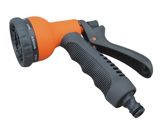Hidropistola de 8 posições com acabamento antideslizante e engate rápido.