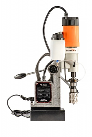 Furadeira de base magnética FE50C 220 V- 60HZ – 1500 W, CM2, velocidade variável, capacidade de perfuração de 2,5 até 50 mm de diâmetro e profundidade de corte de até 50 mm. Fixação por atração eletromagnética com base duplo magnetismo, ajustável em cerca de 45º para ângulo de rotação e 20mm no sentido longitudinal.