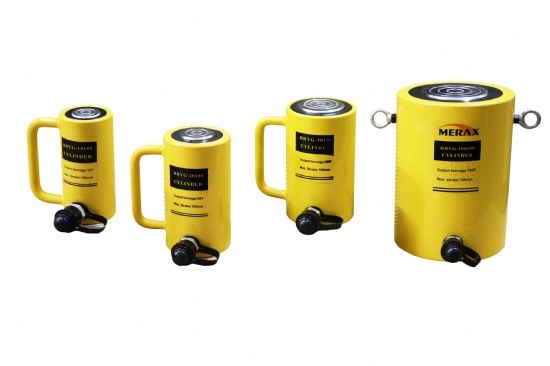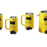 Cilindro hidráulico tipo garrafa para içamento de máquinas e levantamentos pesados.