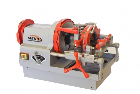 Corta, escareia e rosqueia tubos de ½” à 4″ em roscas BSP ou NPT. Voltagem: 220 monofásica. Potência 750W